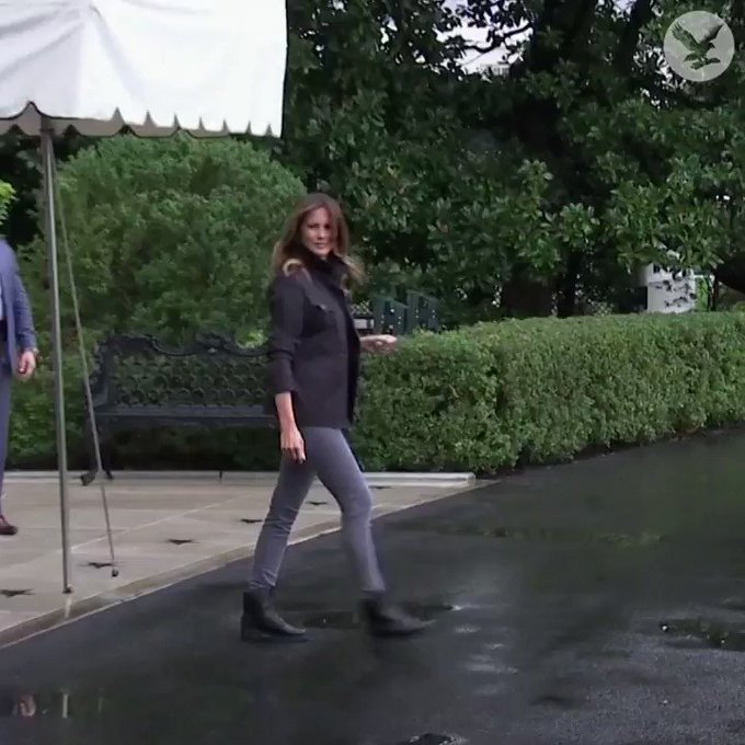 На кадрах видно, как перед входом в лайнер происходит небольшая заминка, затем, судя по всему, не сумев протиснуться в проем с зонтом, Трамп просто бросает его на трап и спокойно заходит в самолет.